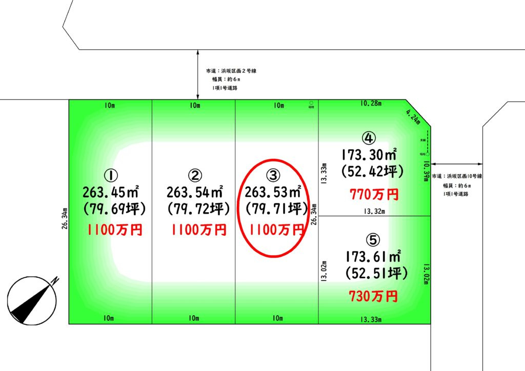 【No.6308】浜坂8丁目(3号地)/79.71坪/1000万円以下で募集中の物件
