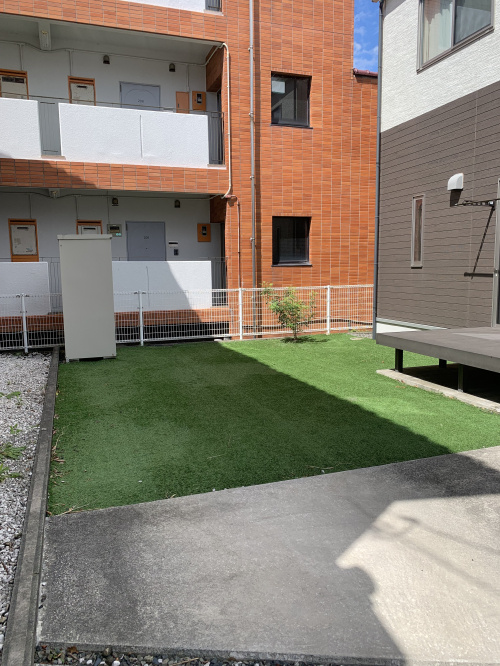 お庭には雑草が生えにくく緑が綺麗な人工芝が敷かれているので
